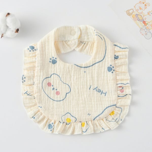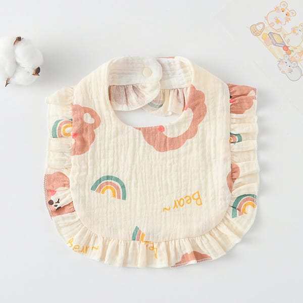 Korean Style Baby Feeding Bib | 0-1 Year | Lotus leaf lace skirt-Rainbow Bear